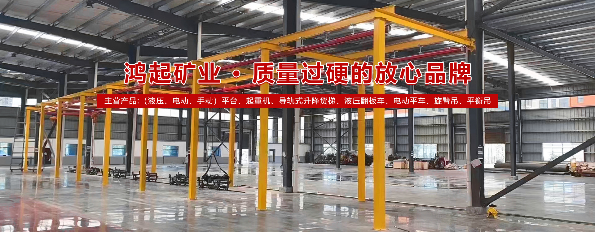河南省鴻起礦業(yè)起重機(jī)械有限公司始建于2011年,是生產(chǎn)登高設(shè)備、起重機(jī)配件的廠家,先后榮獲“質(zhì)量過硬放心品牌”、“AAA 級企業(yè)”、“**企業(yè)”及“質(zhì)量管理**企業(yè)”等榮譽(yù)稱號。公司擁有經(jīng)驗豐富的科技人員和技術(shù)隊伍,技術(shù)力量雄厚,生產(chǎn)設(shè)備精良,工藝**,檢測設(shè)備齊全,安全性能達(dá)標(biāo),產(chǎn)品輻射全國二十多個省、市、自冶區(qū),在同類產(chǎn)品中享有較高的聲譽(yù)。  本公司實力雄厚、技術(shù)**,主營產(chǎn)品類型有(液壓、電動、手動)平臺、單雙梁起重機(jī)、門式起重機(jī)、橋式起重機(jī)、KPK起重機(jī)、液壓平衡器、防墜器、導(dǎo)軌式升降貨梯、液壓翻板車、電動平車、旋臂吊、平衡吊:電纜卷筒、起得機(jī)配件等非標(biāo)設(shè)備制作及維修業(yè)務(wù)。本公司秉承“嚴(yán)格、踏實、上進(jìn)、創(chuàng)新”的企業(yè)精神,不斷發(fā)展頭大,深受廣大用戶的好評和依賴。  本公司經(jīng)營宗旨:“以誠為本,以信取人,以質(zhì)量求生存,以信譽(yù)求民展”。  二十一世紀(jì)是知識經(jīng)濟(jì)的時代,競爭與發(fā)展共存,機(jī)遇與挑戰(zhàn)同在,鴻起人將以朝代的科技,以國際化的服務(wù),以國際化的質(zhì)量,以敏銳的目光、昂揚(yáng)的姿勢面向世界,面向一個更加廣闊的時代和未來。  實力鑄就品牌,服務(wù)創(chuàng)造未來,董事長段建召攜全體員工向各界朋友和新老用戶致意,熱烈歡迎各位朋友惠顧洽談業(yè)務(wù)、指導(dǎo)工作,共創(chuàng)更加美好的明天! [了解詳情]